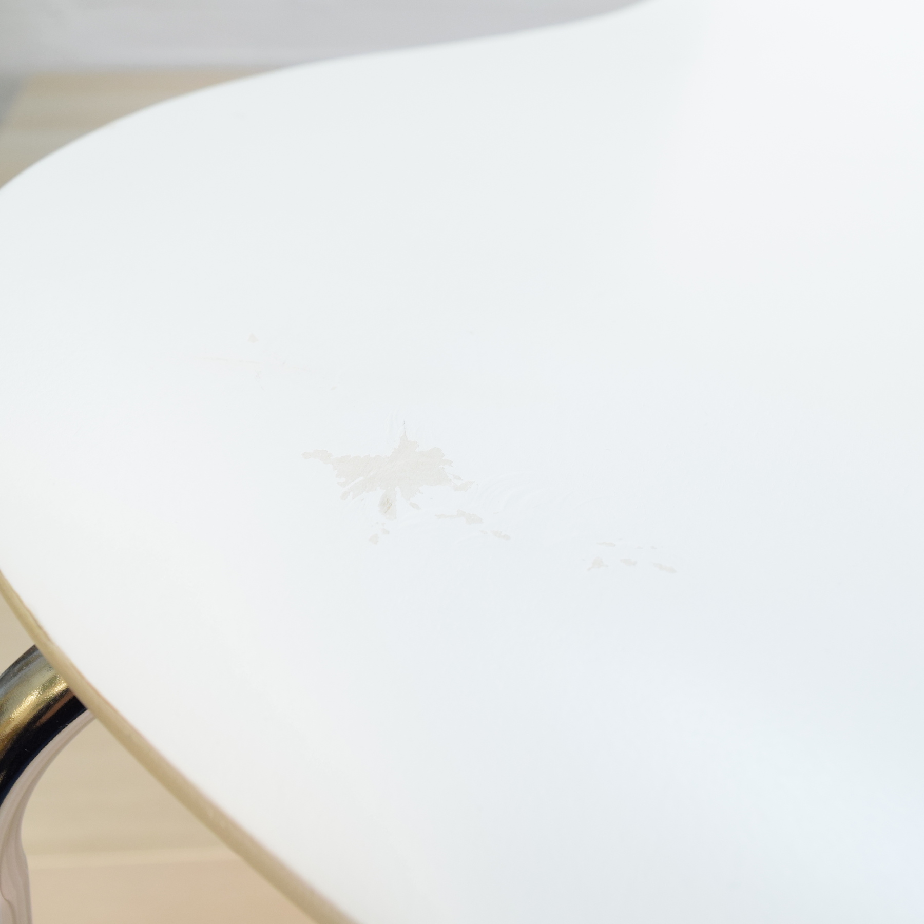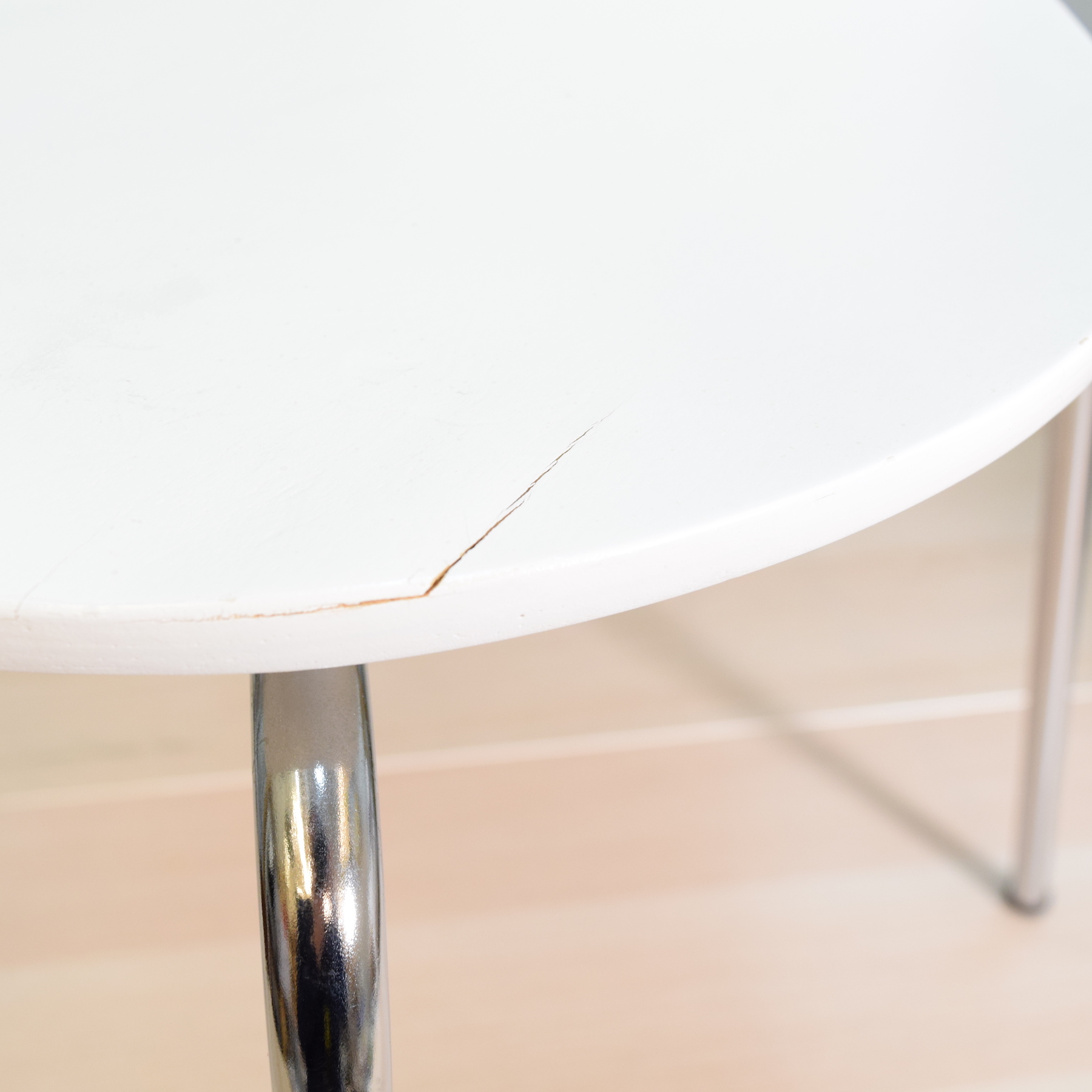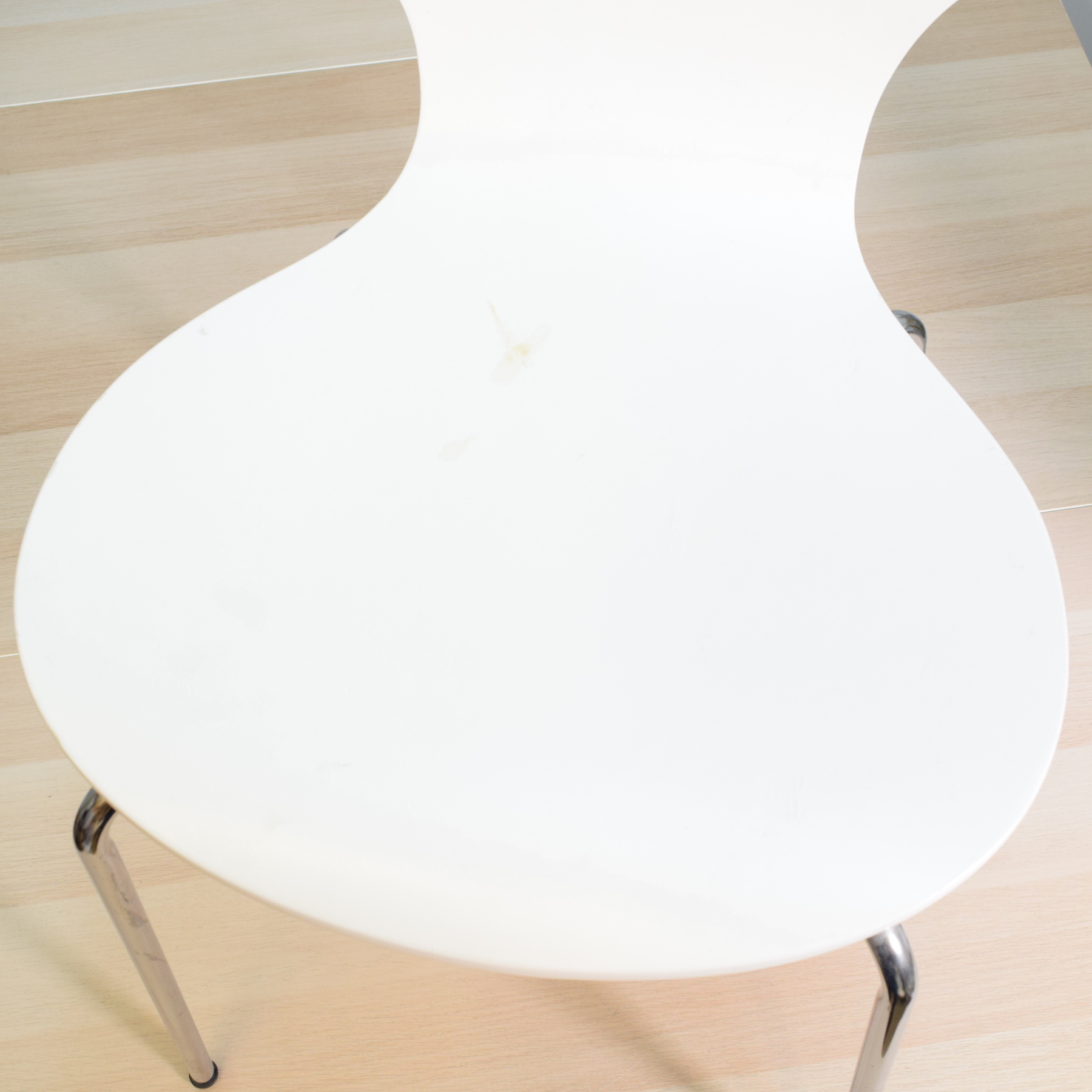 Taitettua maalattua vaneria ja kromijalat.