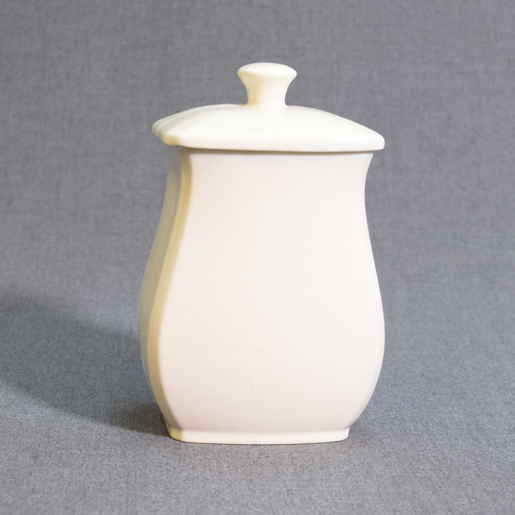 There is a chip on the front of the jar. Otherwise intact and in good condition.