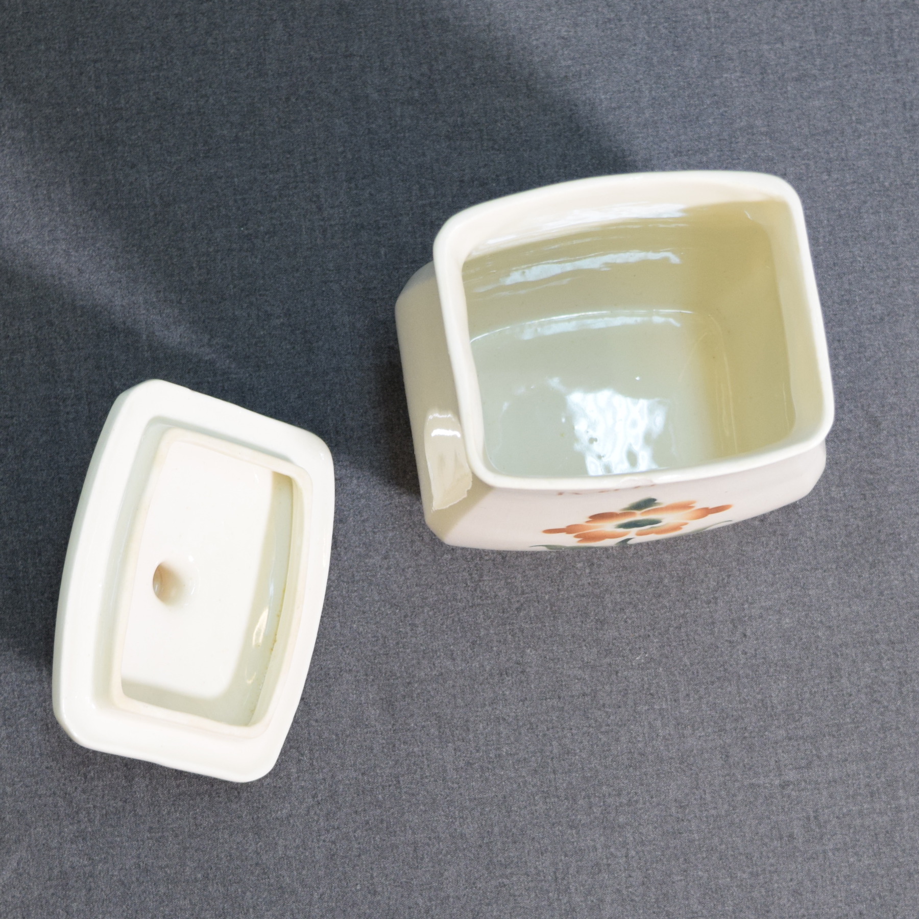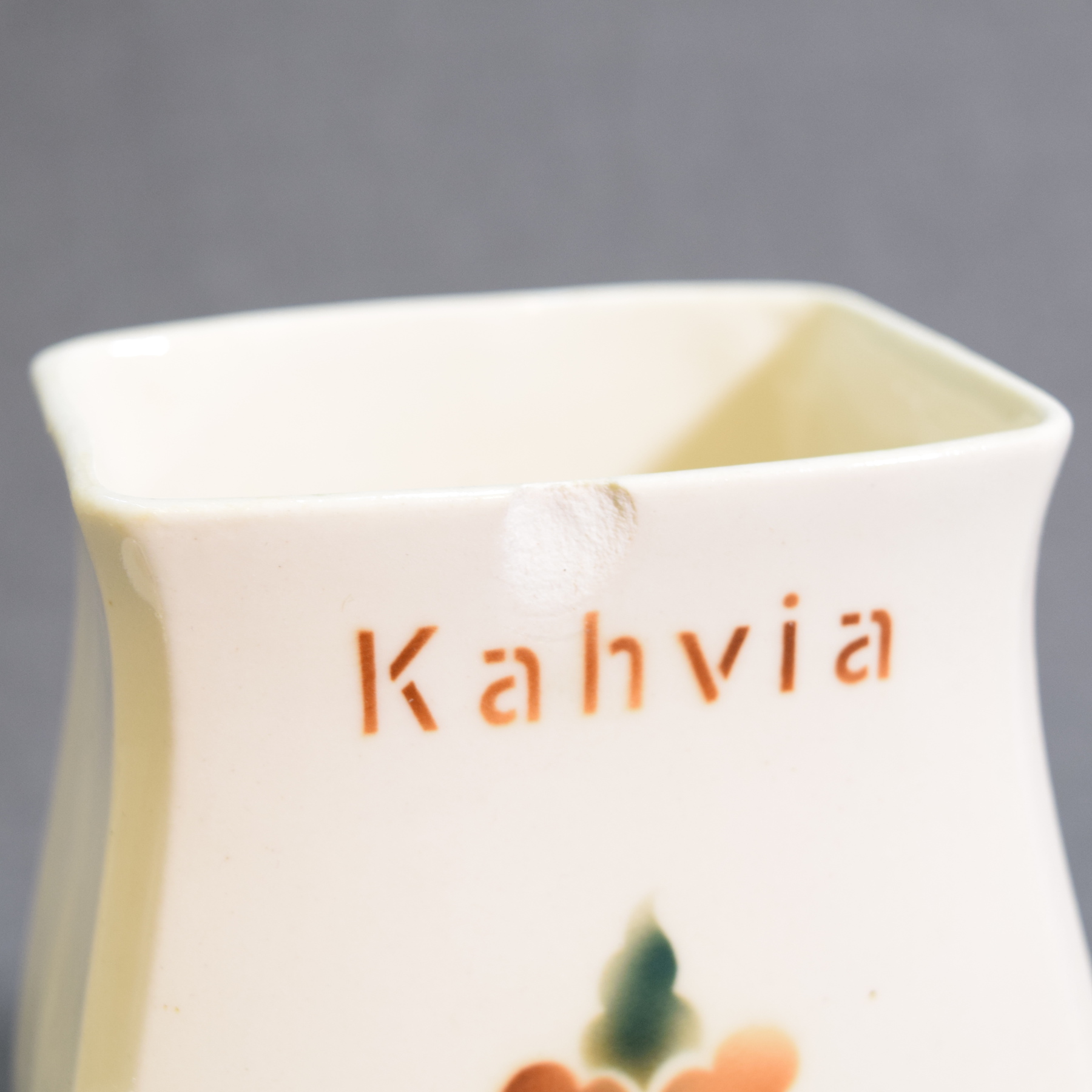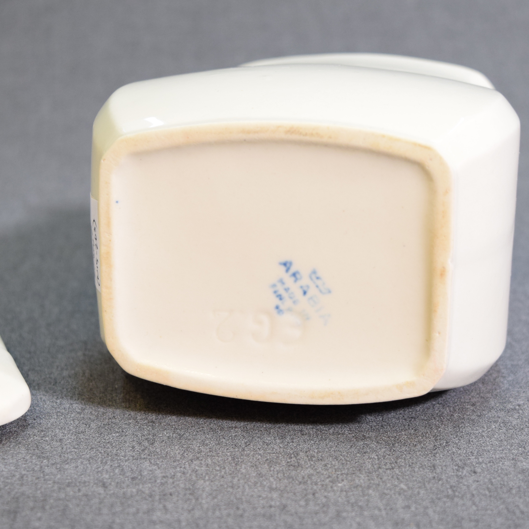Features a brown floral decoration and a blue Arabia stamp.