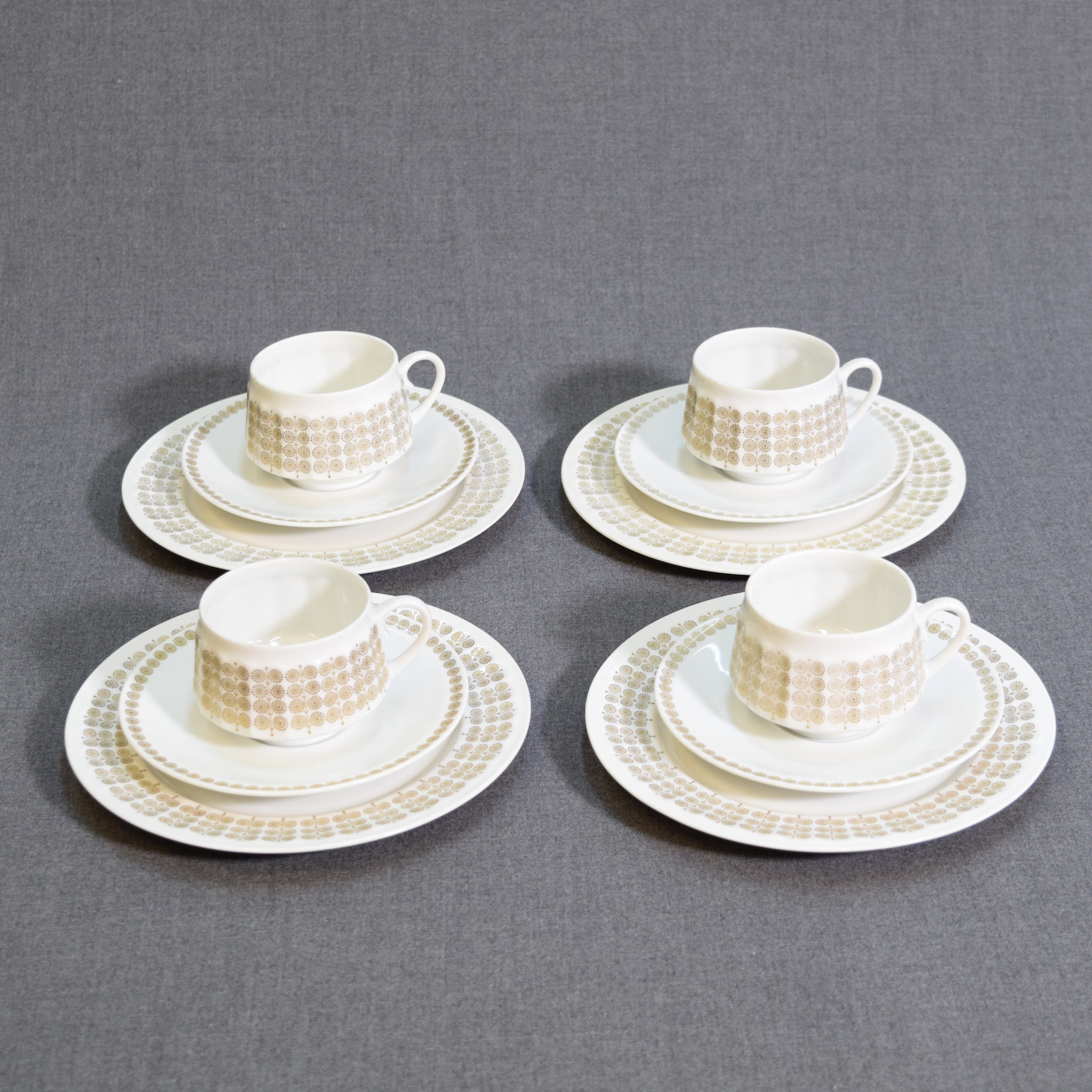 Vintage Arabia "Pallas" Coffee Cups with Saucers and Side Plates – Set of 4