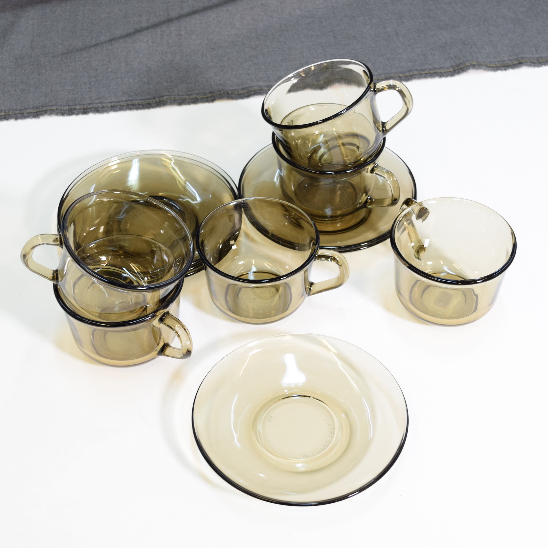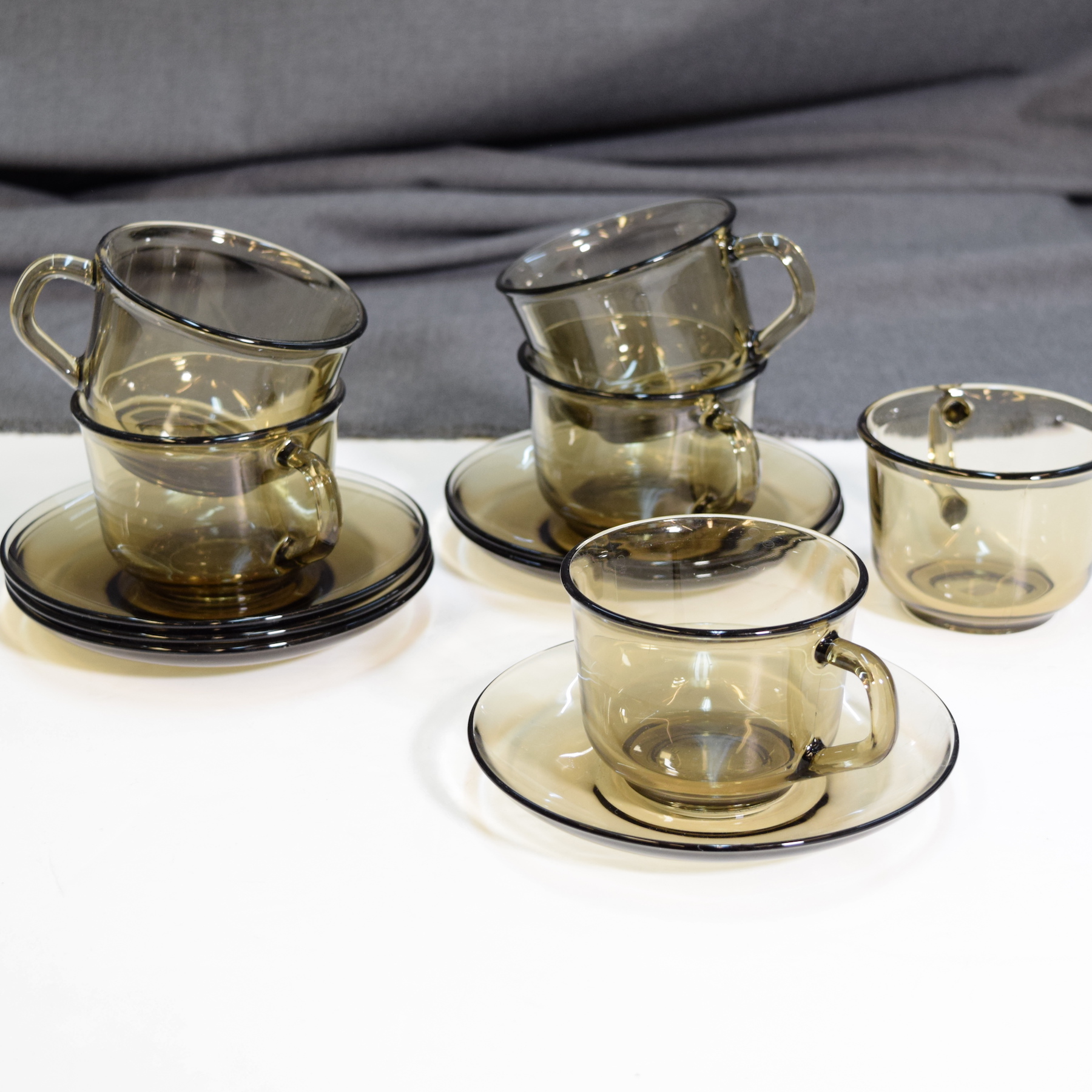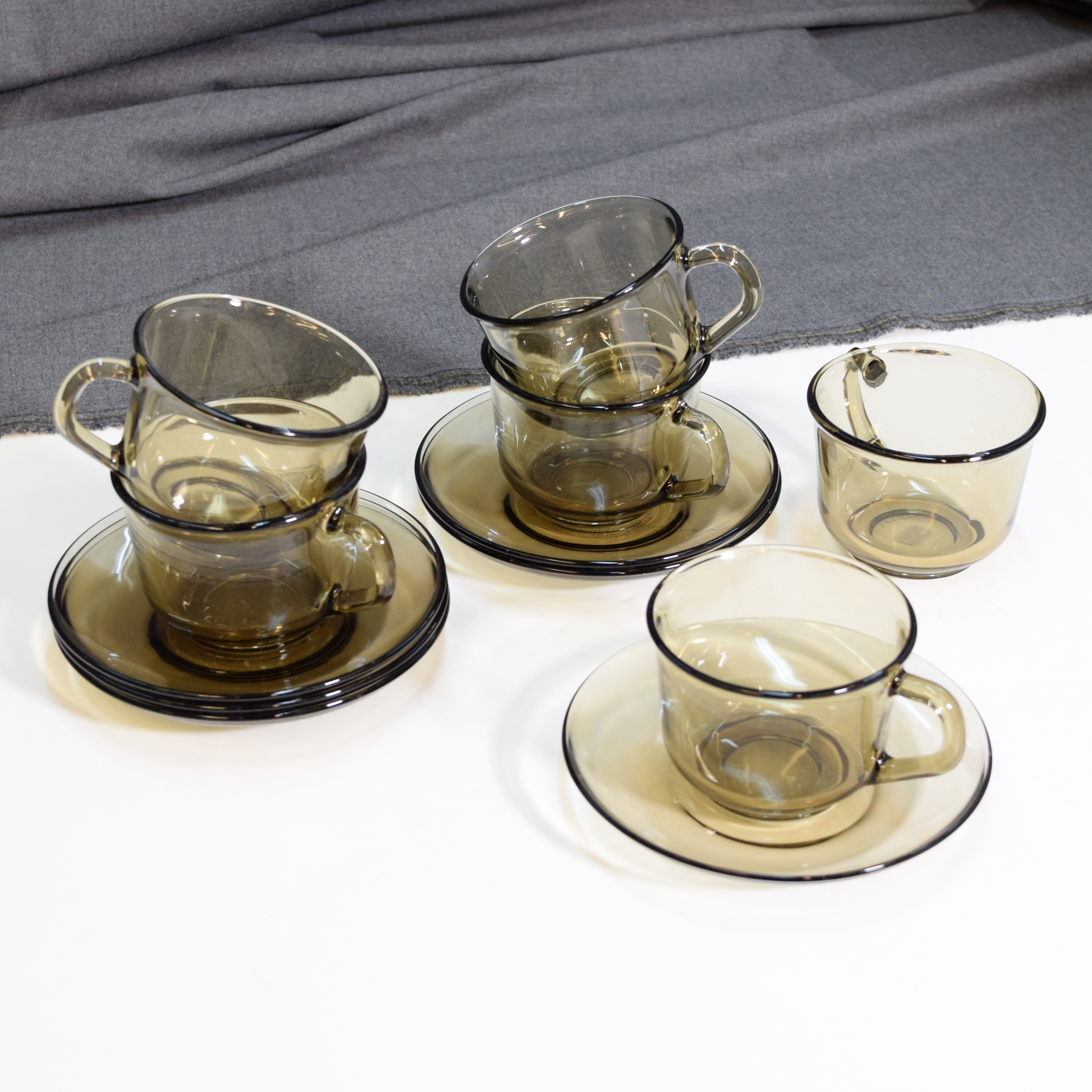 Vintage Arcoroc France kahvikupit ja aluslautaset 6 paria