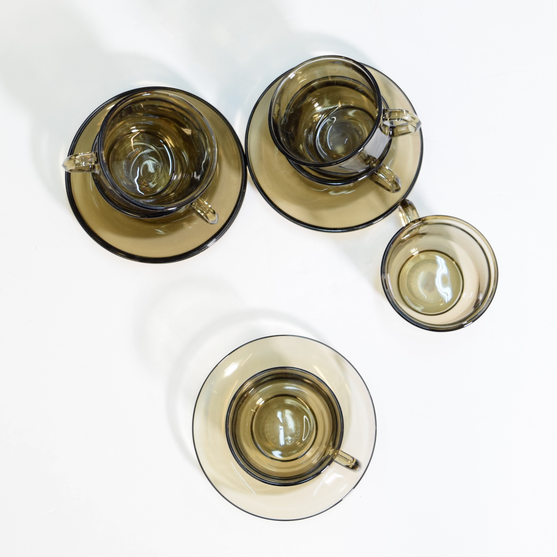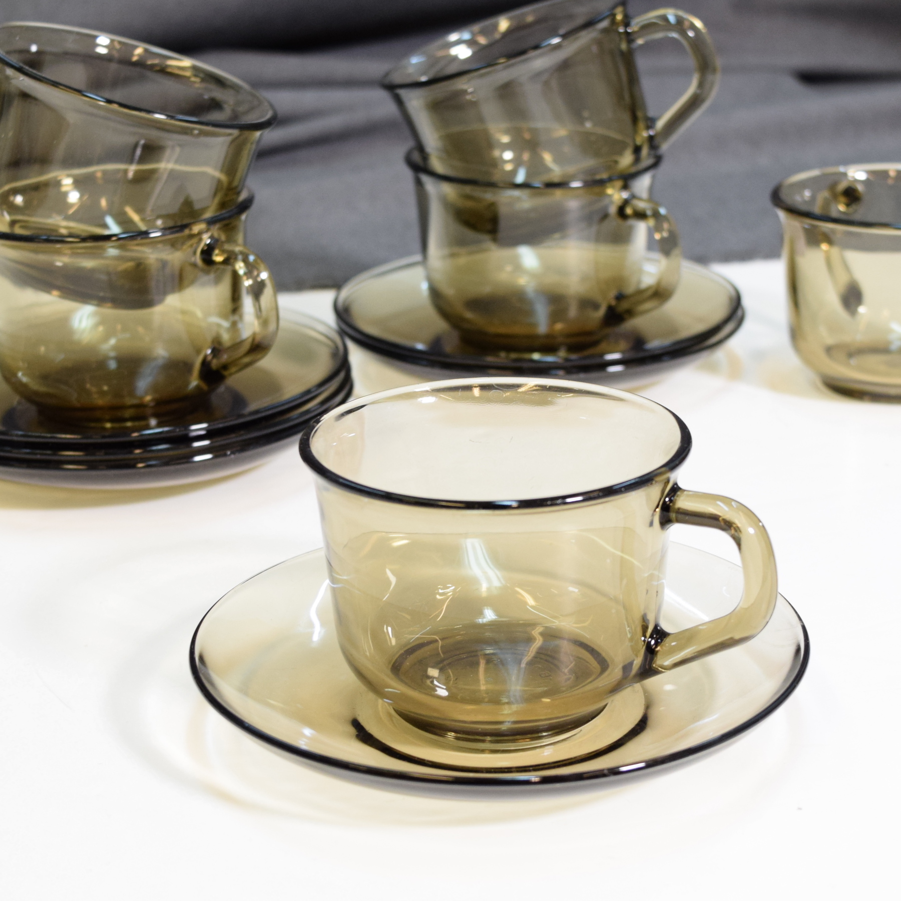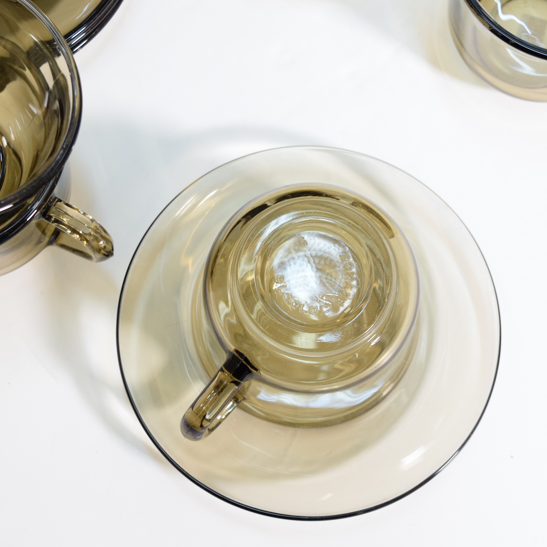 Vintage Arcoroc France kahvikupit ja aluslautaset 6 paria