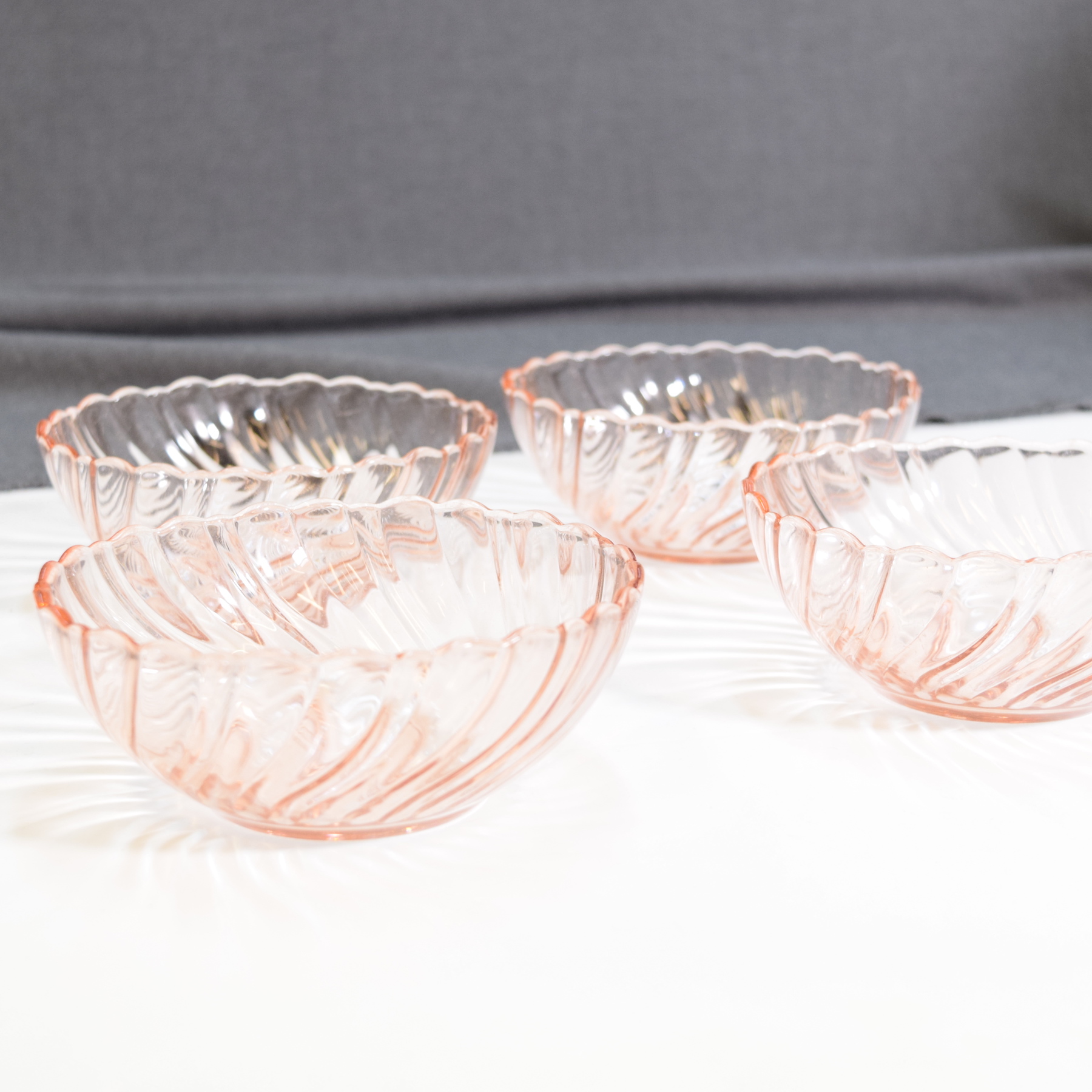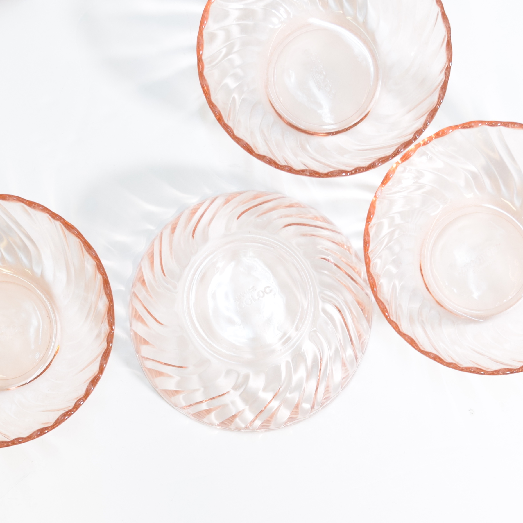 Vintage Arcoroc Rosaline Pink Swirl -lasinen jälkiruokakulho 4kpl