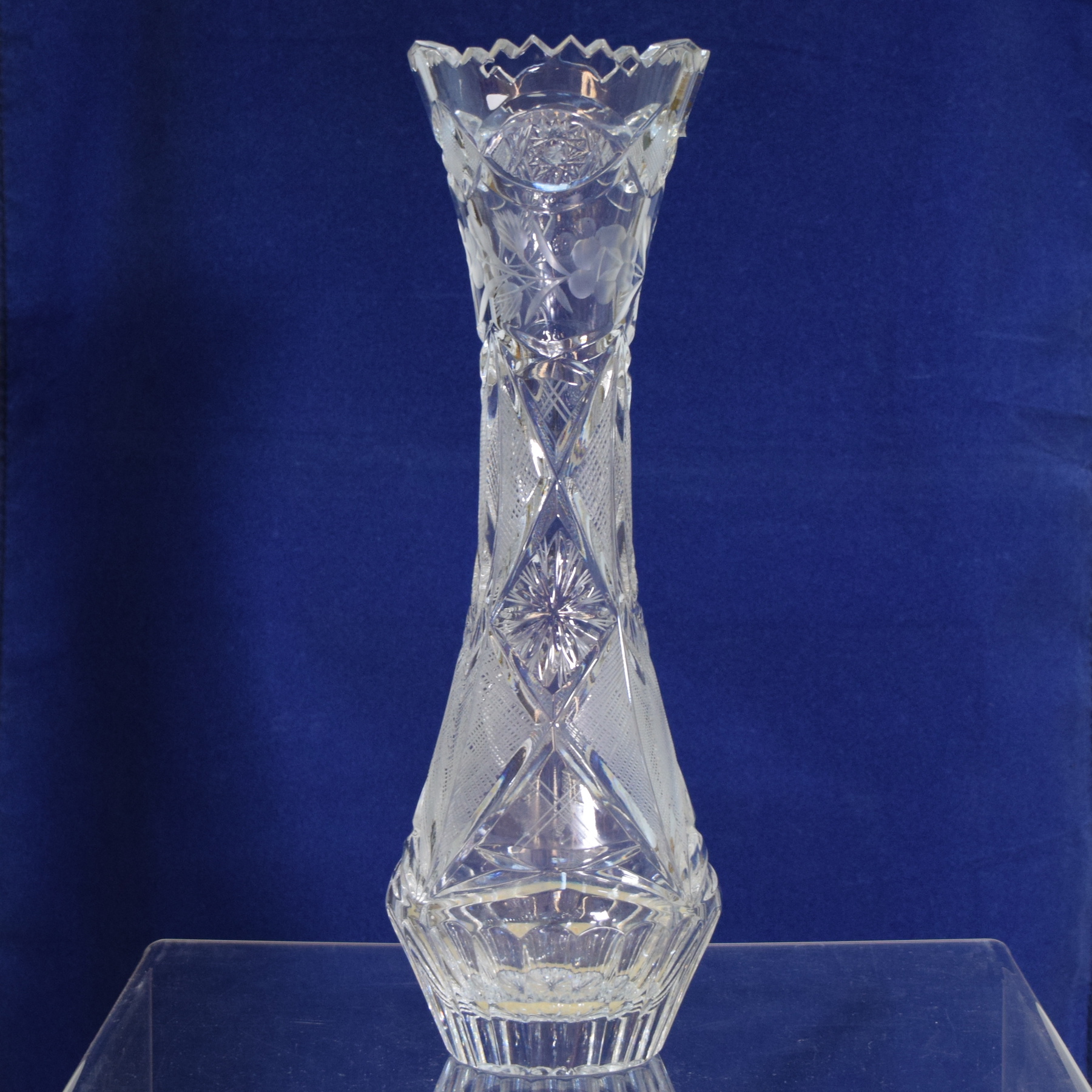 Vintage crystal vase with handmade engravings