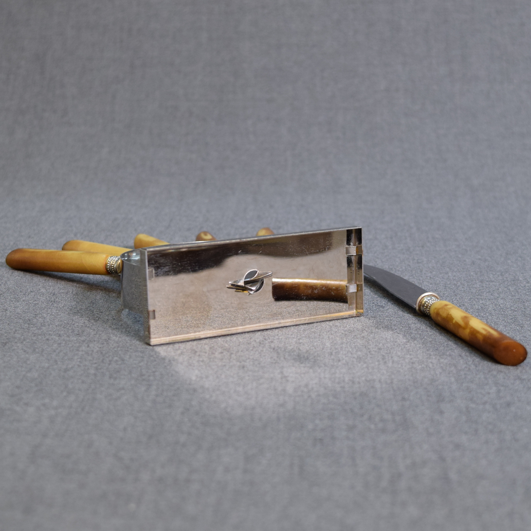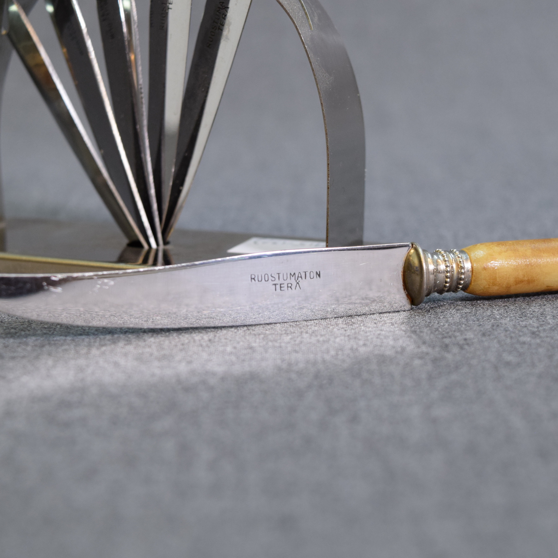 Terässä lukee "Ruostumaton terä", joten ilmeisesti suomalainen setti.