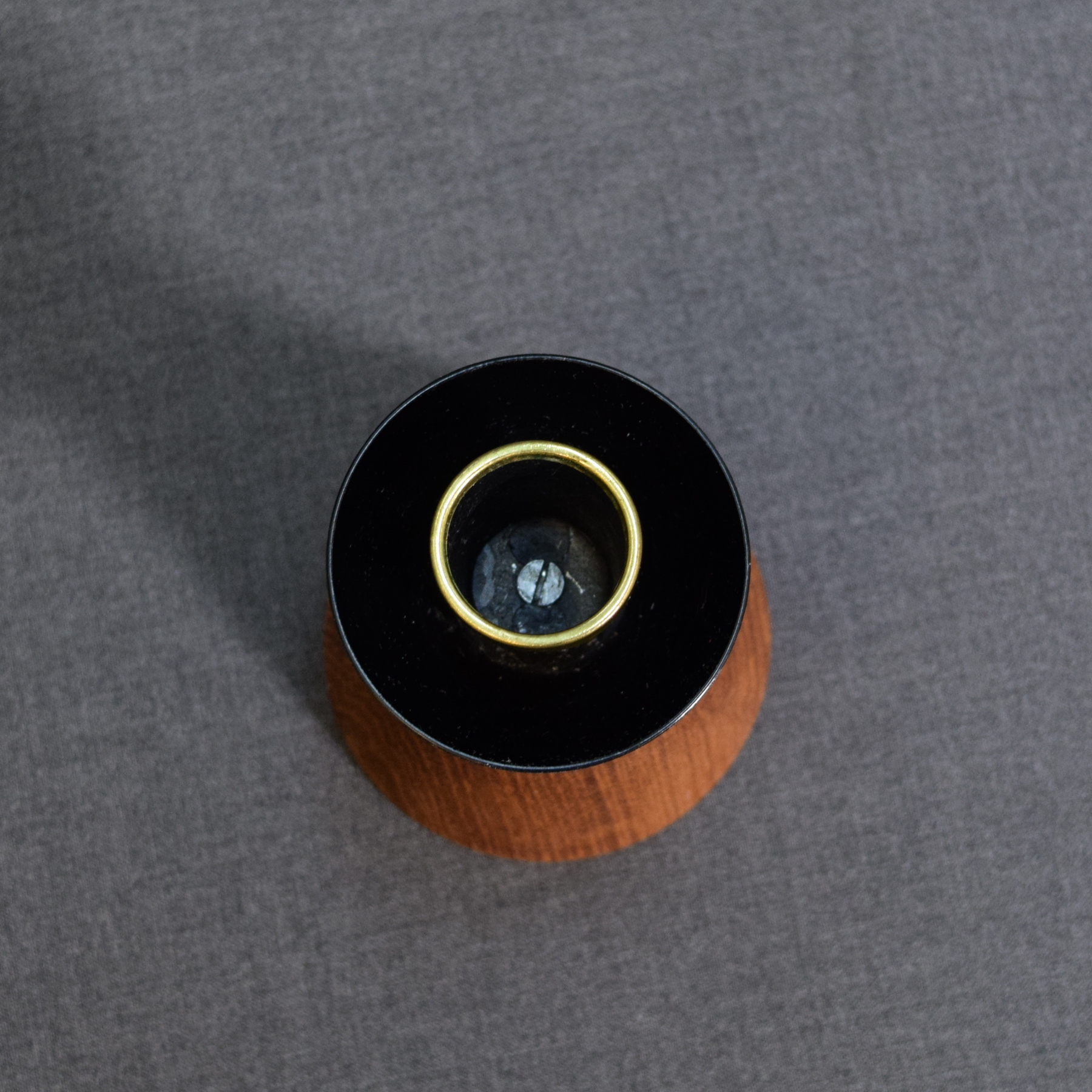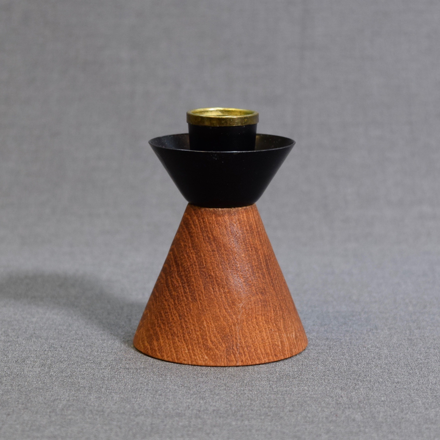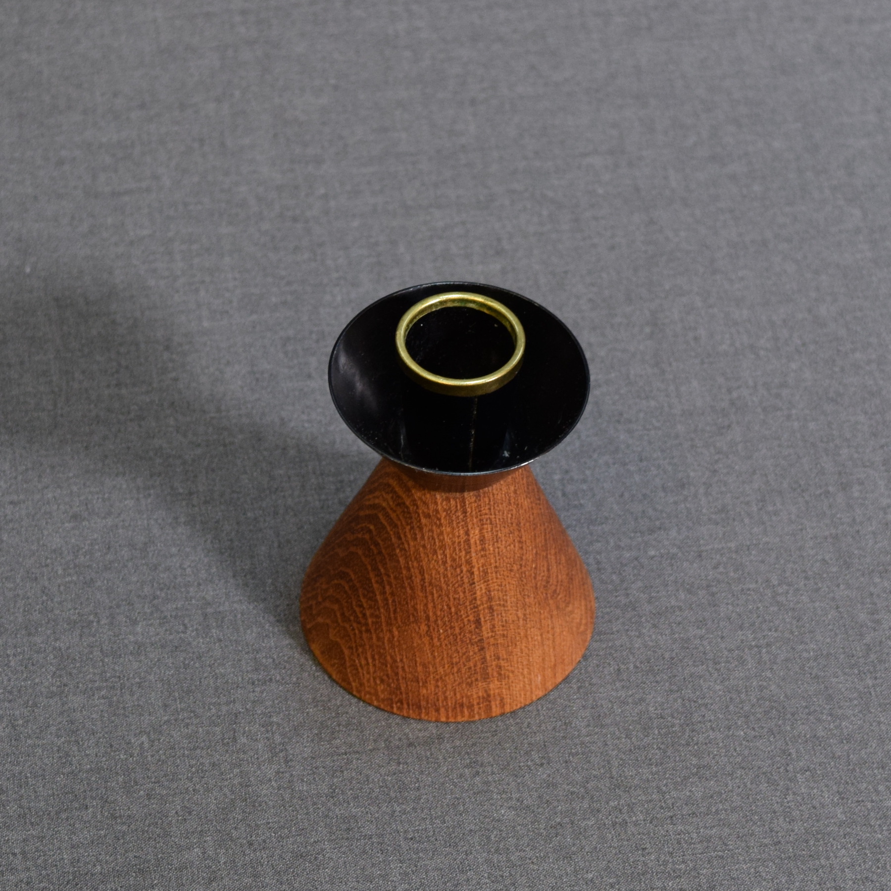 Vintage kynttilänjalka metallia ja tiikkiä