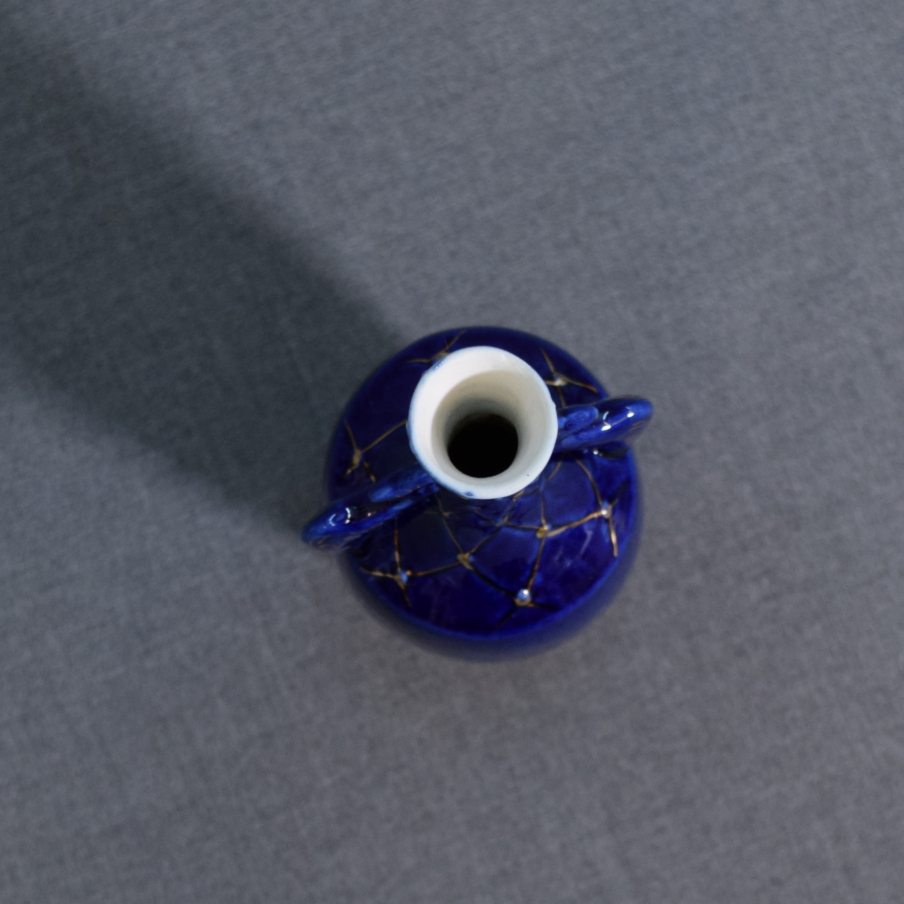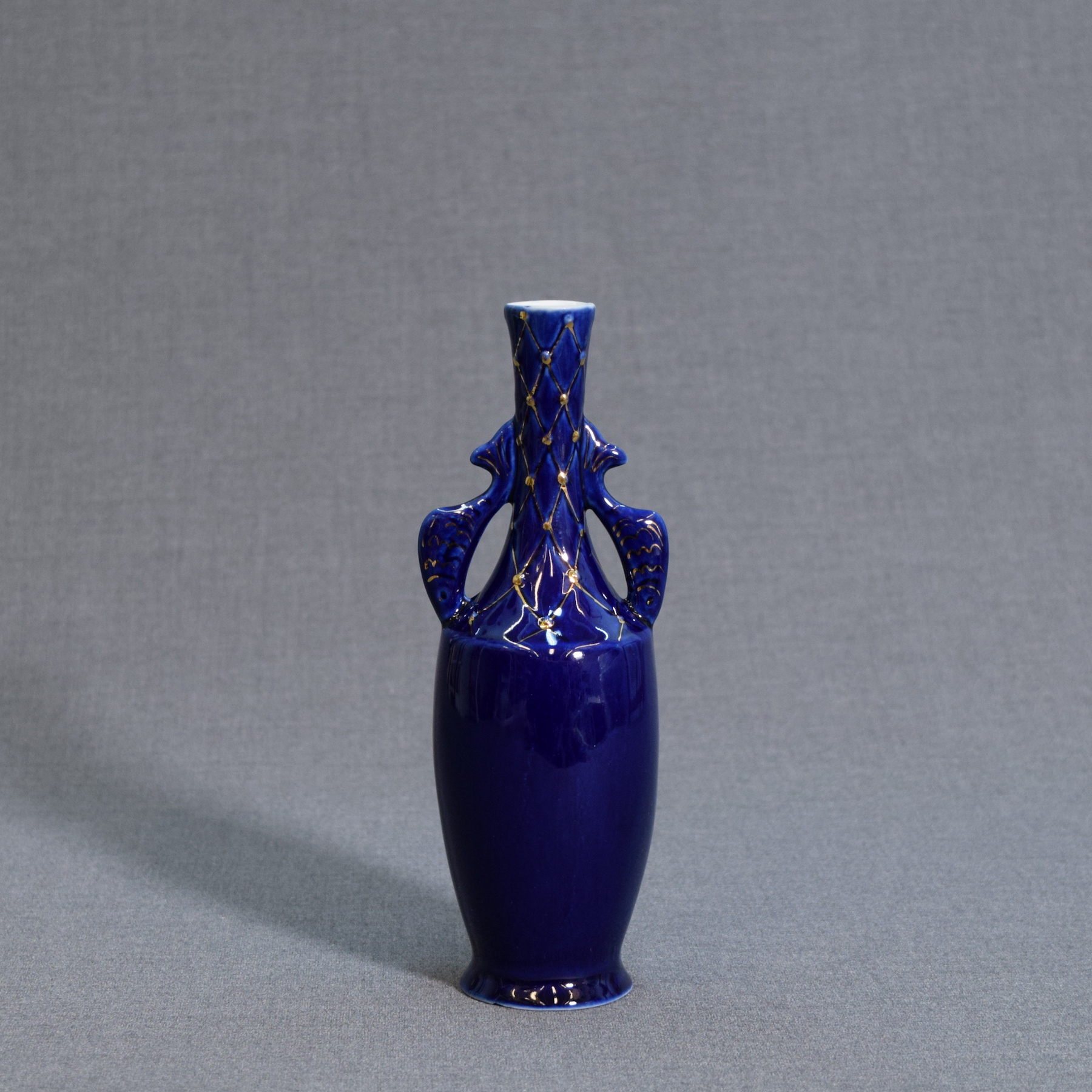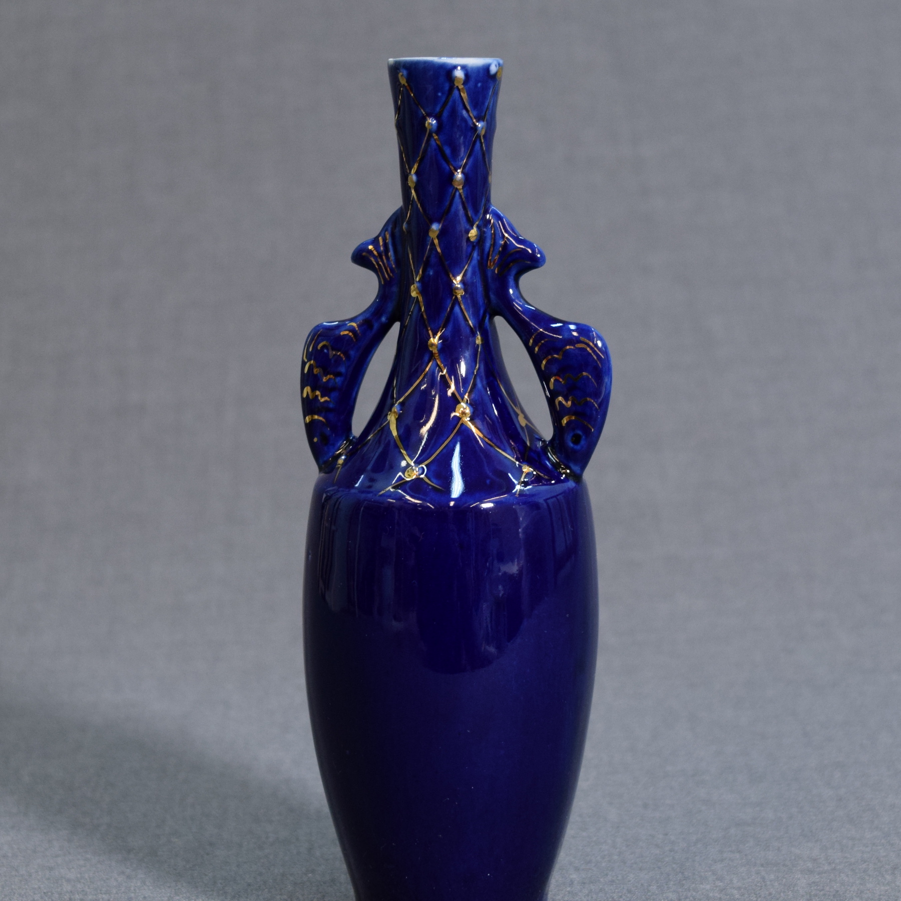 Koboltinsininen ja käsinmaalattu kiiltävä keramiikkamaljakko.