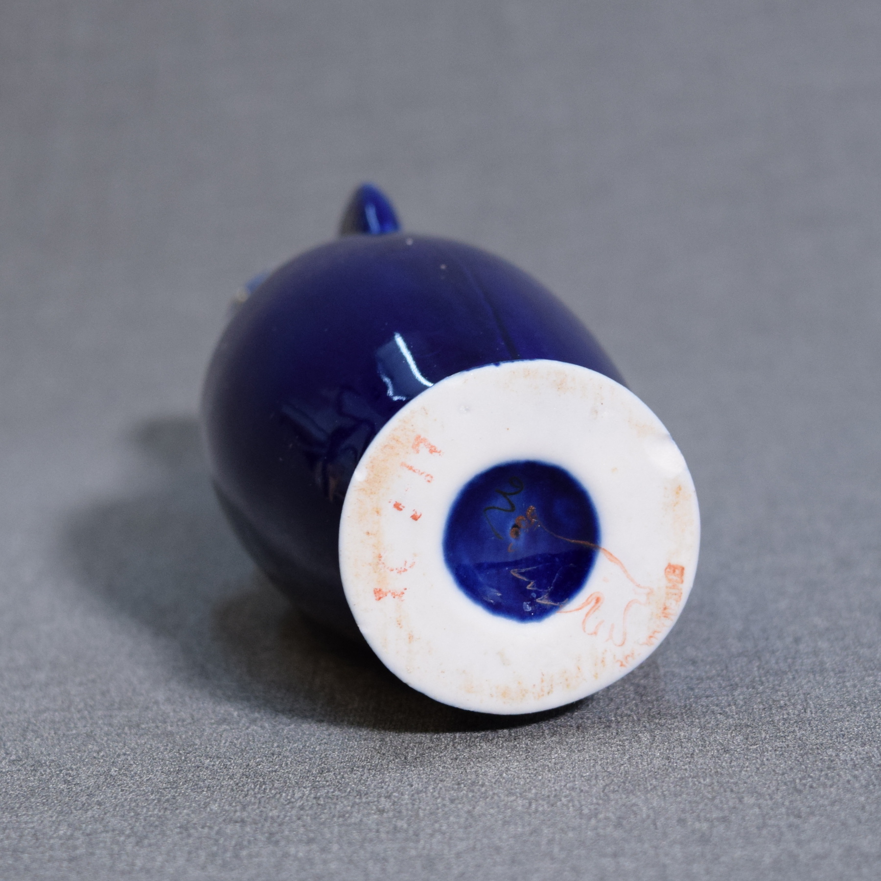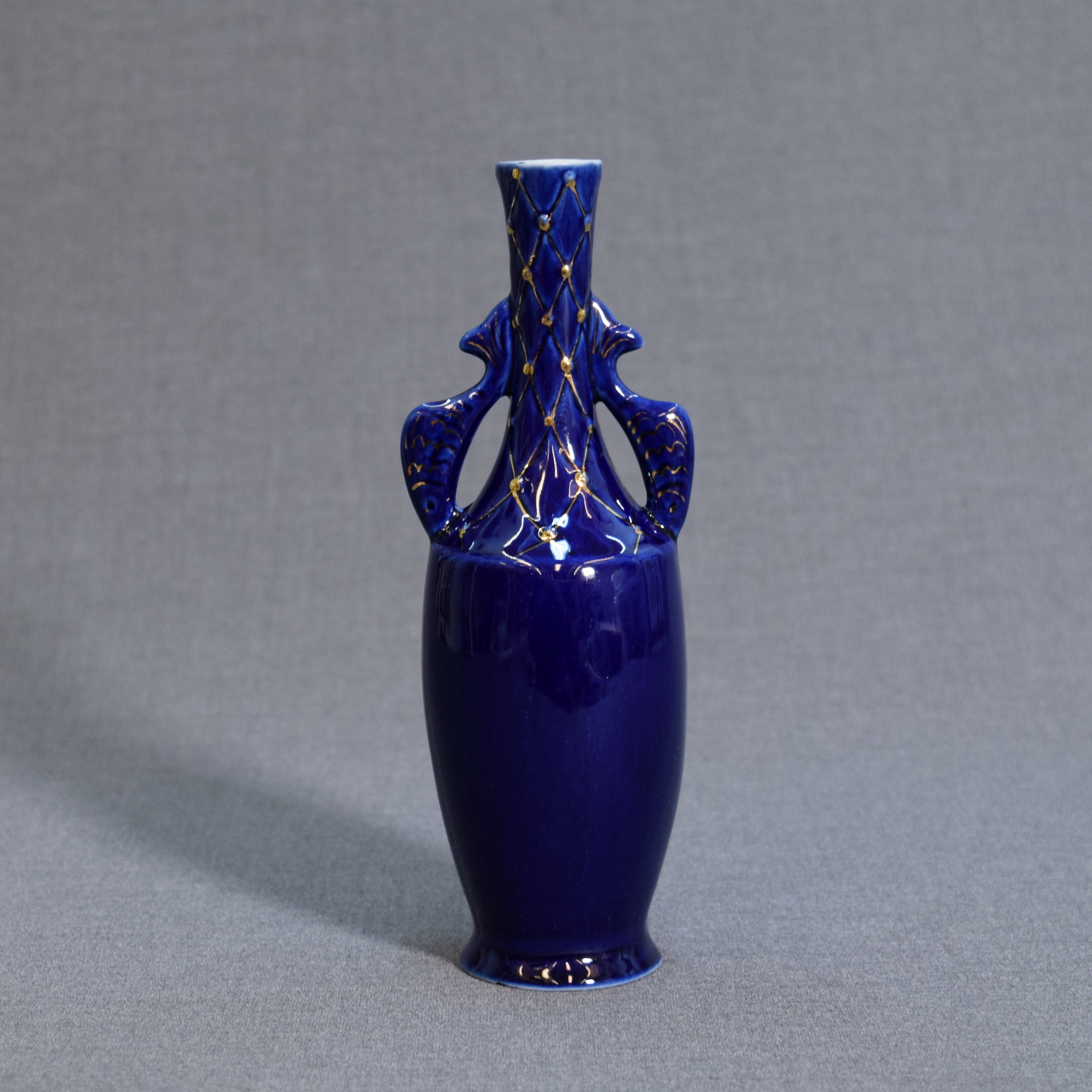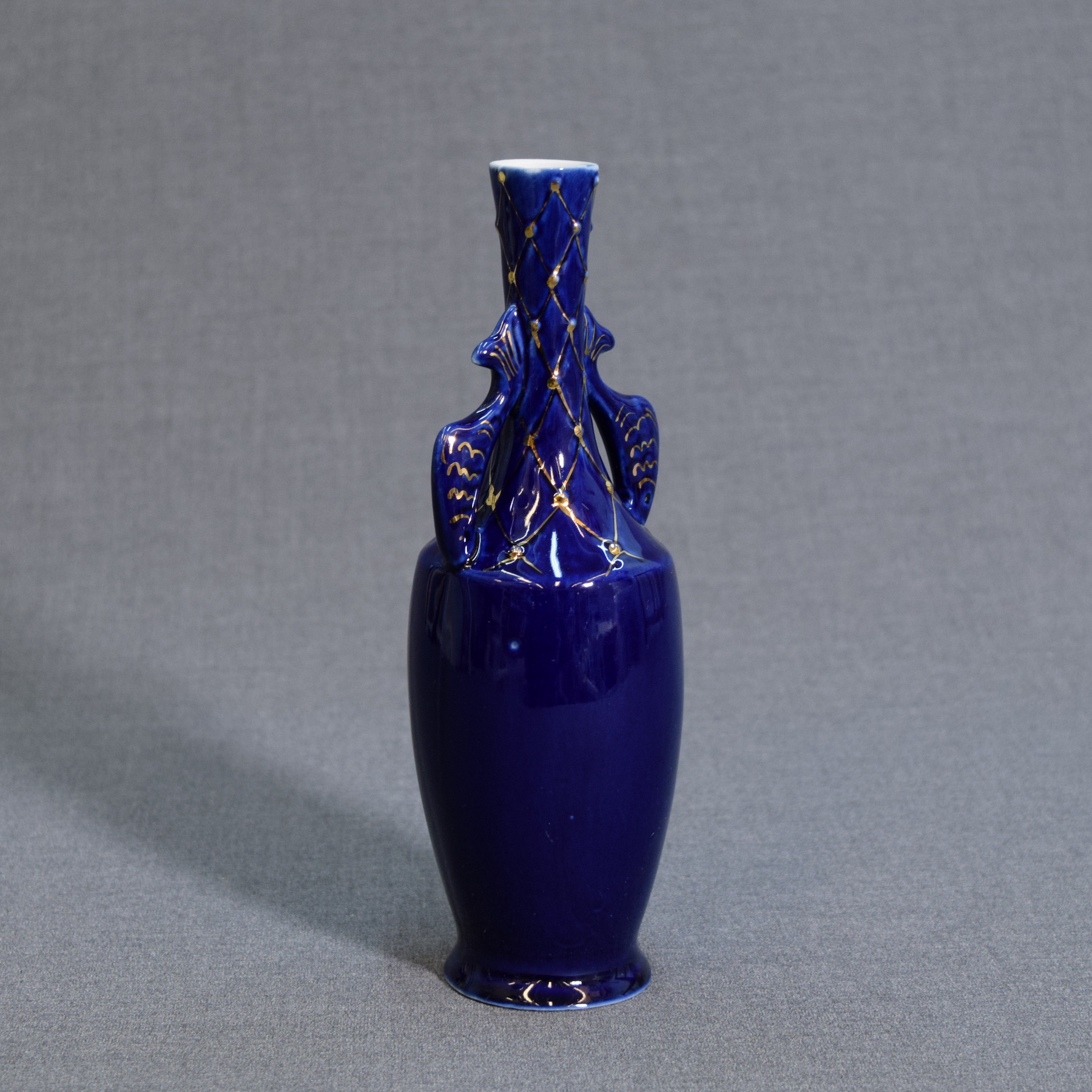 Koboltinsininen ja käsinmaalattu kiiltävä keramiikkamaljakko.