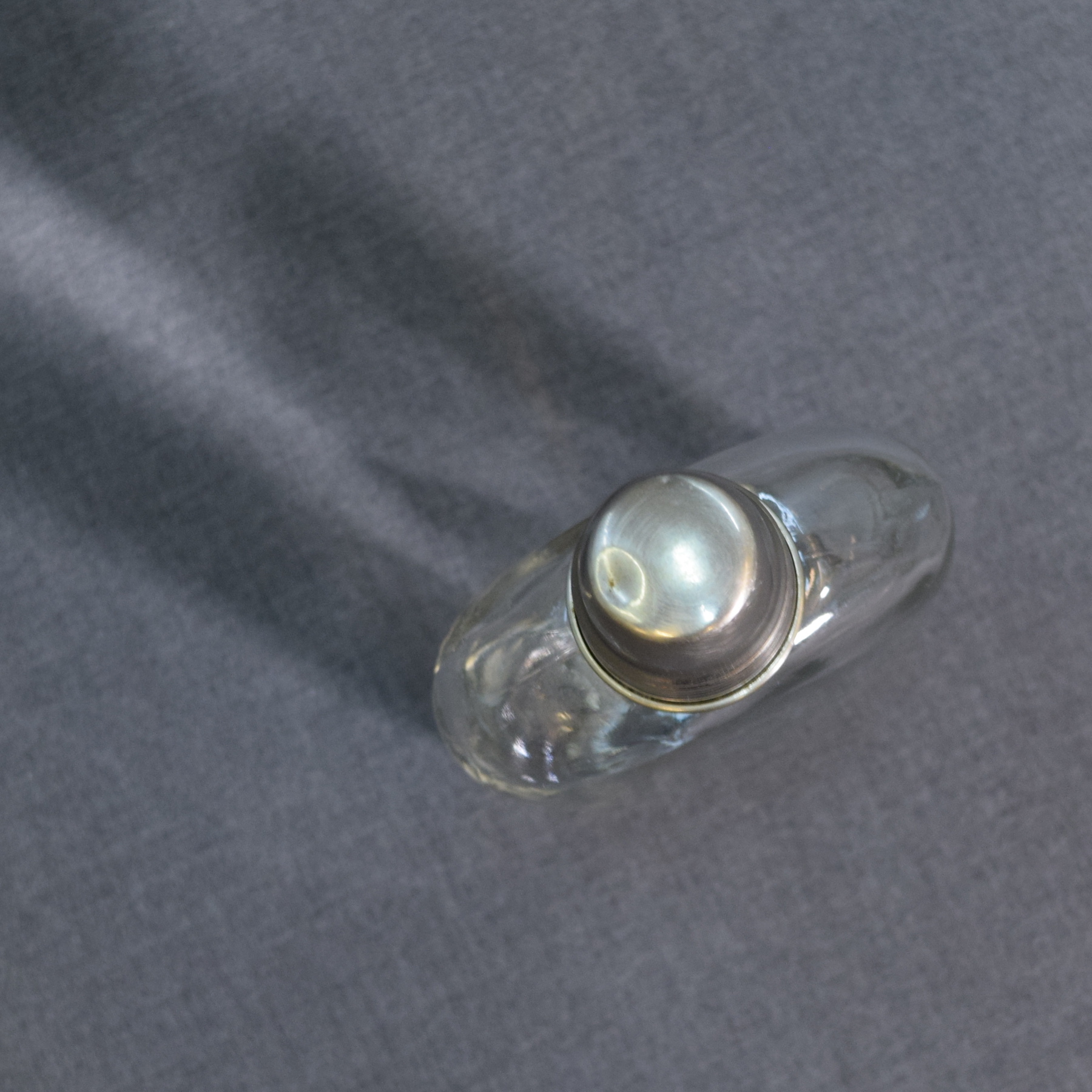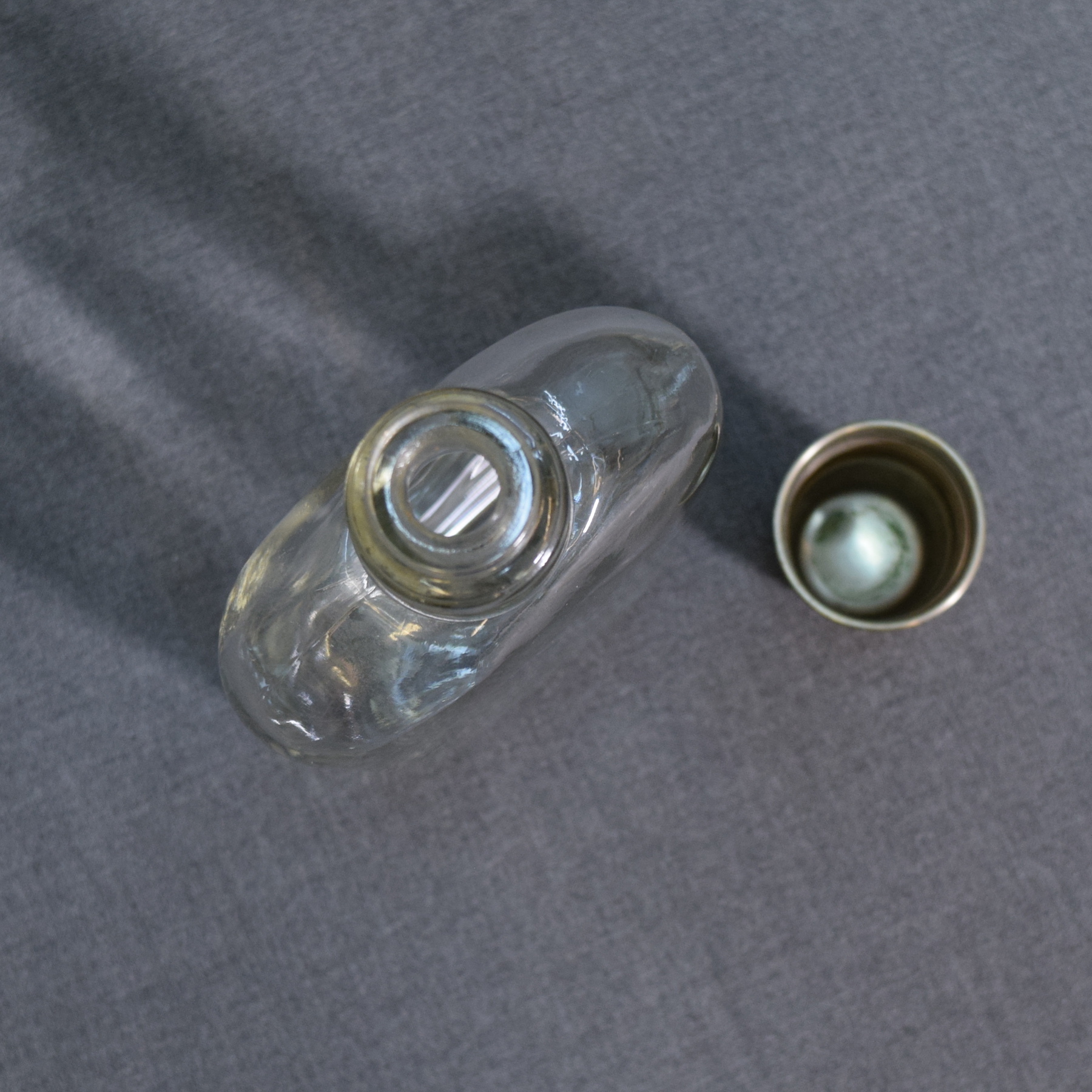 Lasipullo ja metallikorkki. Korkista voi sitten juoda pullon sisältöä.