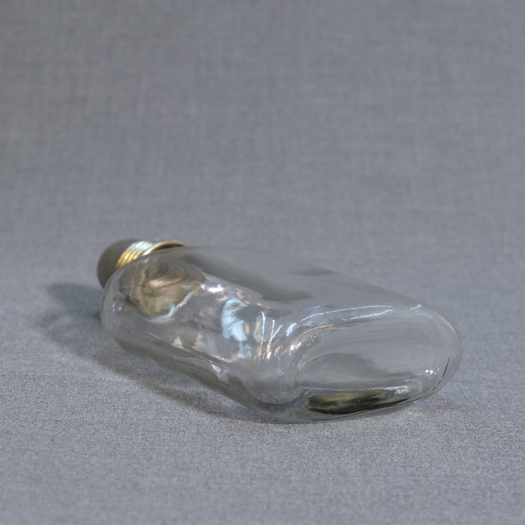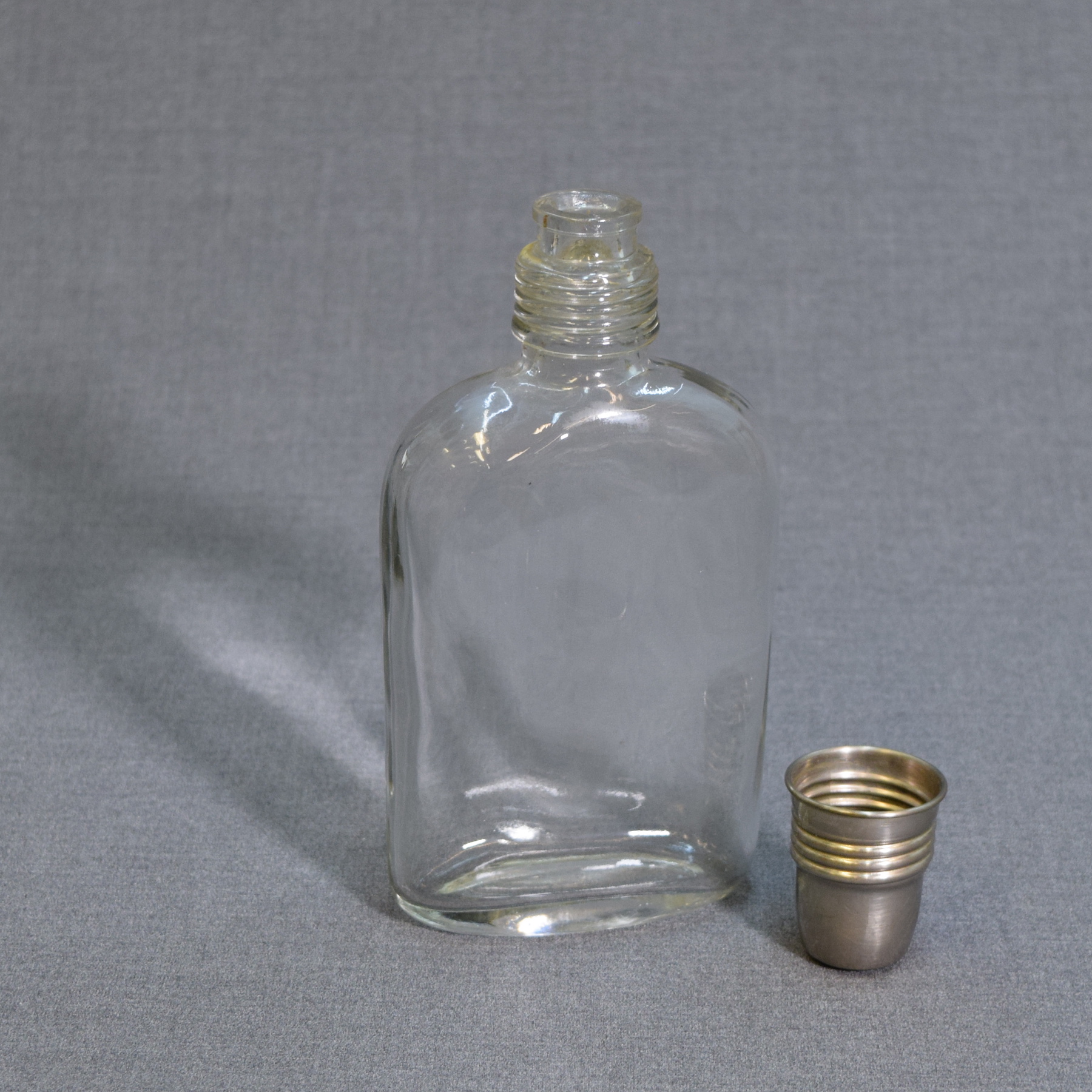 Pullo on vanha ja puutteena ehkä pullon korkki korkki (helppo korvata uudella). Pikku lommo metallikorkissa, mutta muutoin ehjä taskumatti. Tämä on nostalgiaa tanssilavoilta! Se kuuluisa "lasikantinen laulukirja"....