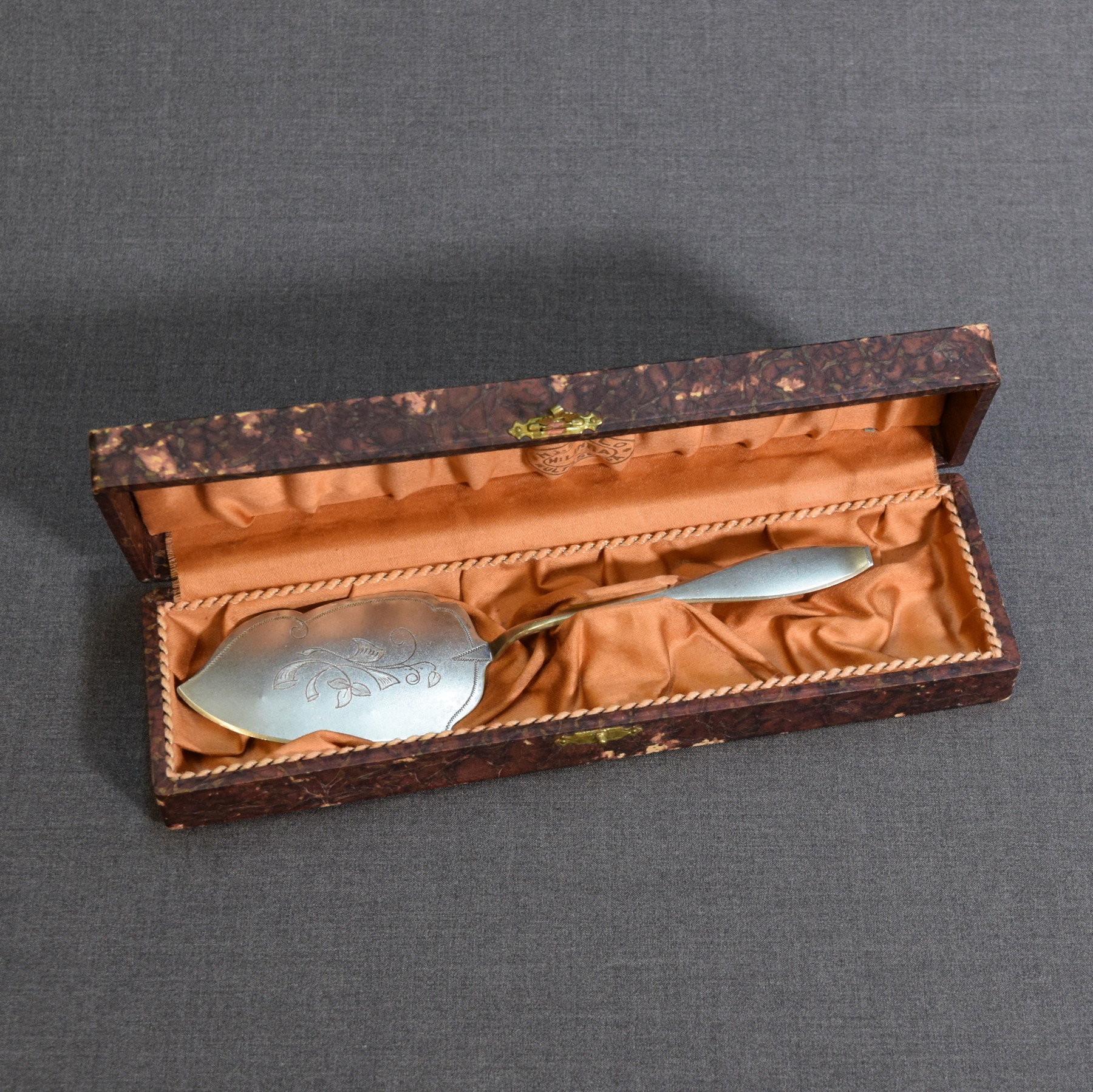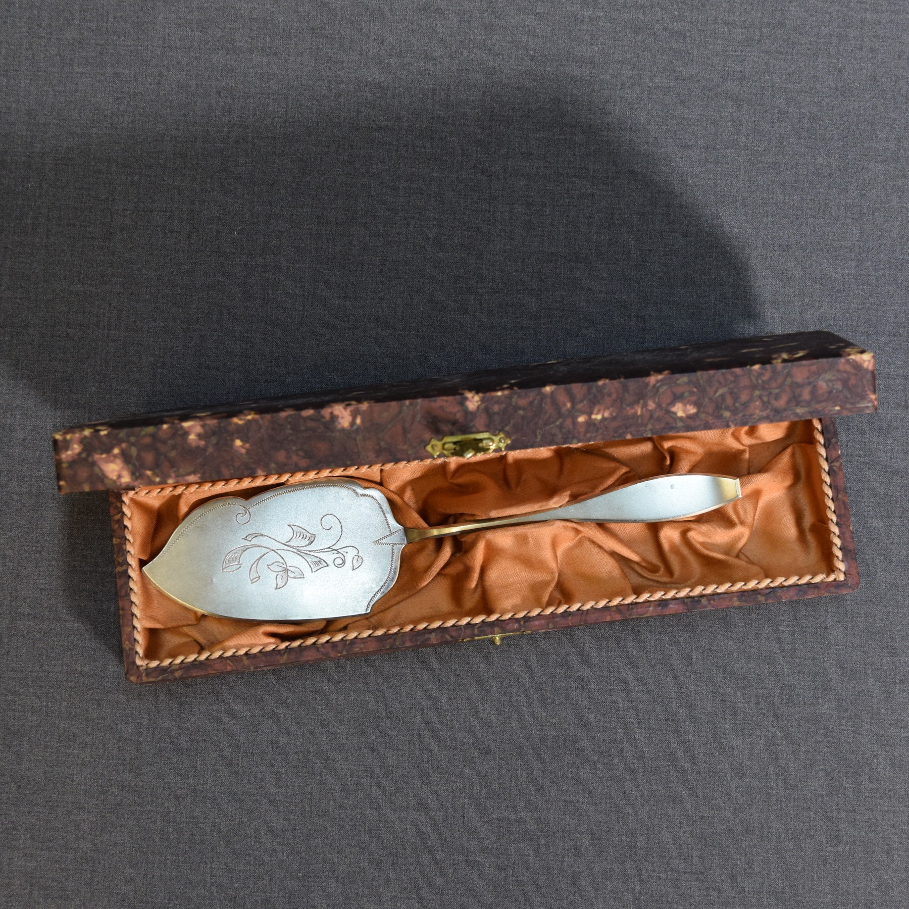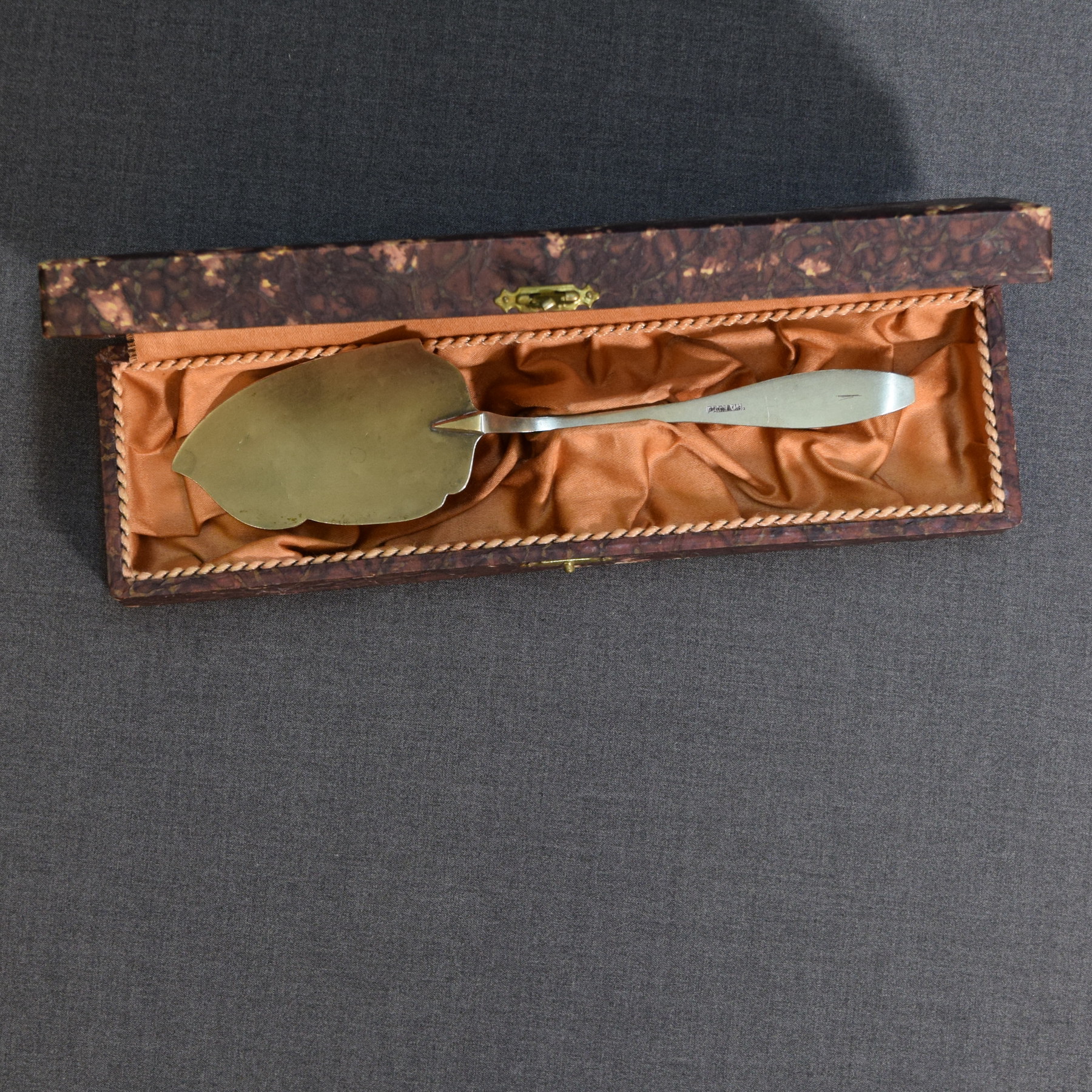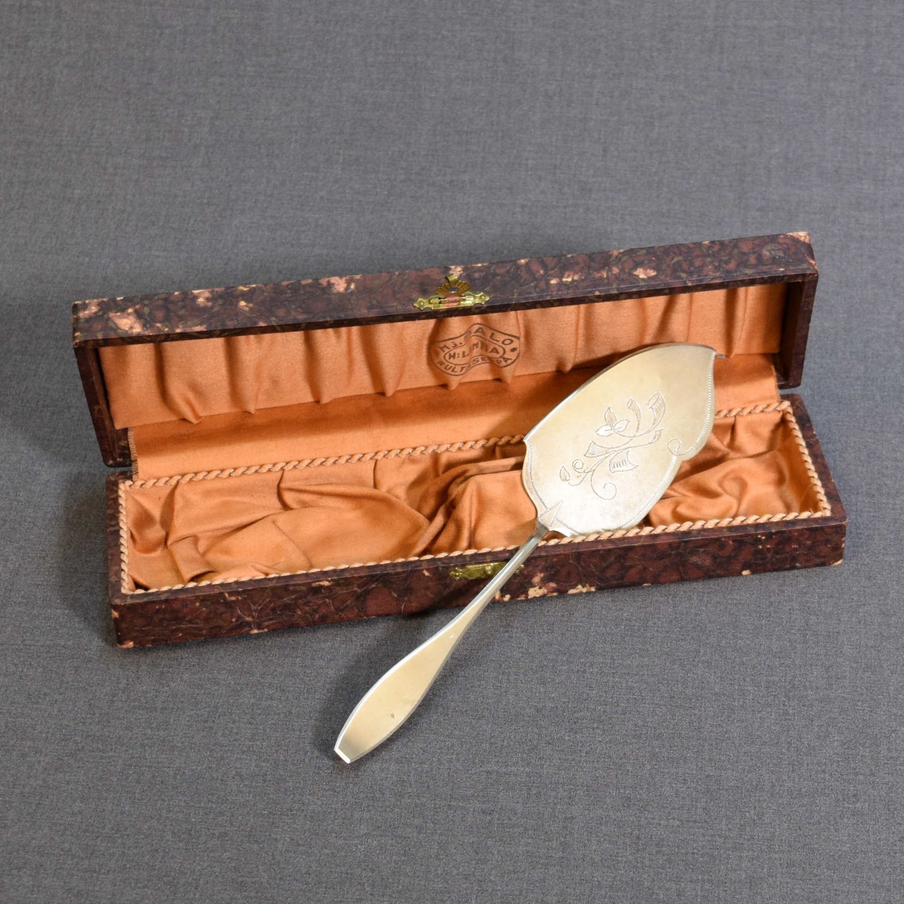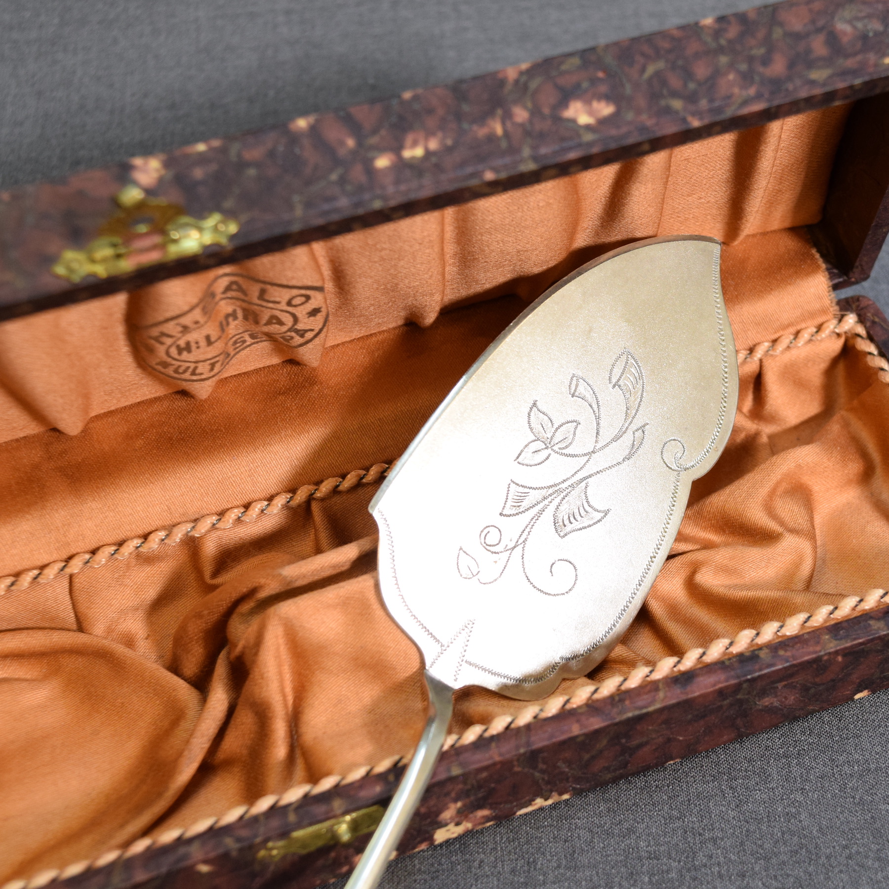 Vintage uushopeinen kakkulapio kotelossa